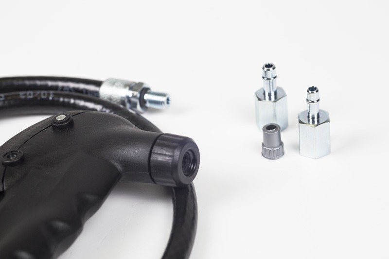 The intelligent clamping tip, recognizing the type of valve, supports Presta and Schrader valves without any adjustments, and after using the included reduction, Dunlop valves.