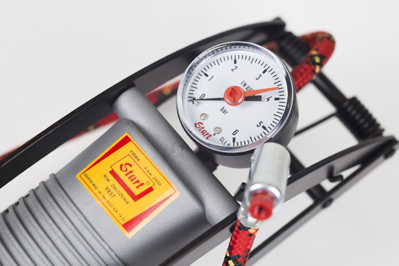 Najbardziej popularna, ciesząca się ogólnym uznaniem pompka nożna z manometrem. Sztandarowy wyrób firmy START. Na terenie Unii Europejskiej chroniona Wspólnotowym Znakiem Towarowym. Poza Polską znajduje nabywców na Ukrainie, Węgrzech, Łotwie, Litwie oraz w Czechach i Słowacji. Dotychczas sprzedano 900 000 egzemplarzy prezentowanego modelu. Nasza pompka nożna wyróżnia się oryginalnym kształtem karbowanego cylindra, wykonanego z poliamidu zbrojonego włóknem szklanym, który zapewnia nieosiągalną dla cylindrów stalowych stabilność kształtu oraz odporność na korozję i deformacje. Konstrukcja pompki jest efektem wieloletnich doświadczeń. Jej proporcje wymiarowe zostały zoptymalizowane pod względem efektywności pompowania w zakresie ciśnień stosowanych przy pompowaniu opon samochodowych. Zastosowano w niej wysokiej klasy europejski manometr zgodny z normą EN 837-1, z nastawną wskazówką i czytelną tarczą z podziałką 0,1 bara.